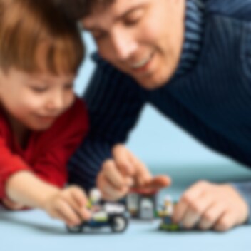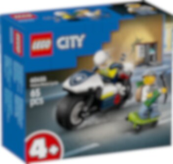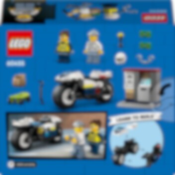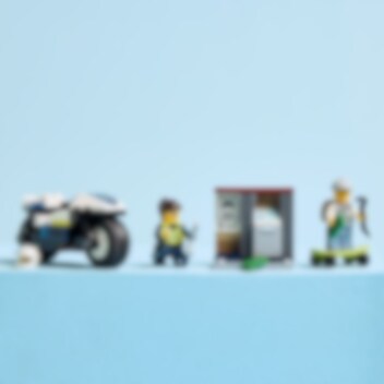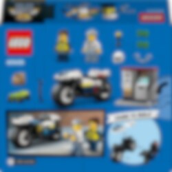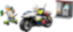 Ein gesuchter Ganove saust auf seinem Skateboard davon – mit dem Geld, das er aus dem Geldautomaten stibitzt hat! Jage ihm mit dem Polizeimotorrad hinterher! Diese tolle Maschine ist mit ihren Breitreifen bestens für Actionabenteuer gerüstet. Brause an Hindernissen vorbei durch Straßen und enge Gassen, um dem Dieb die Beute abzunehmen. In LEGO® City erwarten dich rasante Verfolgungsjagden!