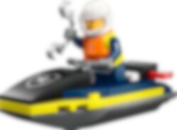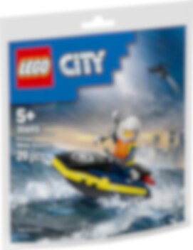 Auf dem LEGO® City Polizei Jetski erwarten dich spannende Wellenritte. Das Set beinhaltet auch eine Minifigur. Der Polizist trägt eine Schwimmweste, einen Helm und Handschellen.