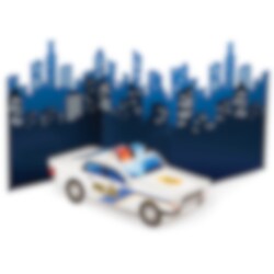 Coole Tischdekoration mit einer Stadt und einem Polizeiauto. Ein lustiges Accessoire, mit dem man den Tisch dekorieren kann. Die Dekoration ist etwa 69 x 30 cm groß.