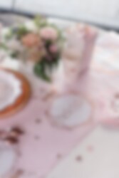 Der Tischläufer besteht aus Polyester, ist etwa 30 cm breit und 5 Meter lang.