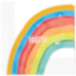 20 Servietten mit Motiv eines bunten Regenbogens und dem Text Party! aus dem Regenbogenparty-Motto. Ein schönes Detail auf dem Tisch, wenn es Zeit für eine Regenbogenparty ist.