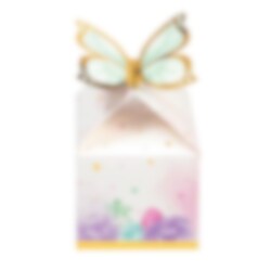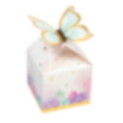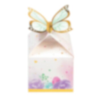 8 exklusive Geschenkboxen in schönen Farben und mit einem pastellfarbenen Schmetterling mit Goldfoliendetails obendrauf. Perfekt, um der Kinderparty Süßigkeiten und Überraschungen hinzuzufügen. Die Geschenkboxen haben eine Größe von 12 x 10 cm. Aus Pappe gemacht.