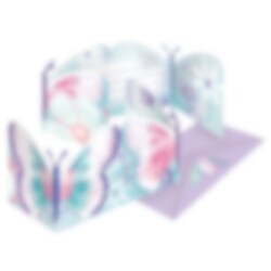8 geformte Einladungskarten in tollen Farben mit Schmetterlingen und dem Text "Party“ in Türkis. Laden Sie damit die Gäste zu einer lustigen Schmetterlings-Mottoparty ein. Die Einladungskarten sind gefaltet etwa 7,5 x 13,5 cm groß und im Paket sind zusätzlich 8 lavendelfarbene Briefumschläge enthalten. Beachten Sie, dass die Einladungskarten keinen Text enthalten.