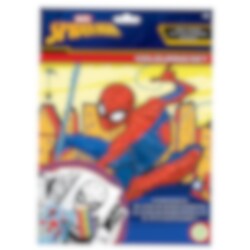 Lustiges Malbuch mit Spider-Man-Motiv. Enthält 8 Blätter zum Ausmalen, 6 dazugehörige Buntstifte und 1 kleinen Stickerbogen mit Motiven der beliebten Figur Spider-Man.