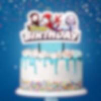 Tortentopper aus Pappe mit dem Text "Happy Birthday" und lustigen Motiven von Spidey und seinen Super-Freunden! Höhe 13 cm.