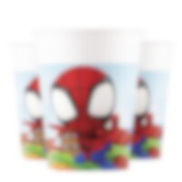 8 becher mit Motiven aus Spidey And His Amazing Friends. Die Becher sind 9 cm hoch und fassen 200 ml. Die Becher sind aus FSC-zertifiziertem Papier.
