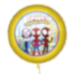 Machen Sie die Feier besonders fröhlich mit diesem runden Spidey-Folienballon mit Spidey, Spider-Gwen und Miles Morales! Das farbenfrohe Design ist eine tolle Dekoration, die gute Laune auf der Kindergeburtstagsparty verbreitet.