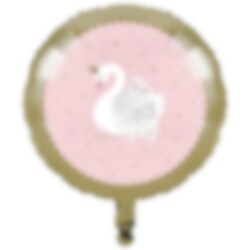 Folienballon in den Farben Rosa, Gold und Weiß und mit dem Motiv eines schönen Schwans. Eine beeindruckende Dekoration für eine Party mit dem Thema "Stylish Swan“. Der Ballon hat im aufgeblasenen Zustand einen Durchmesser von etwa 45 cm und wird mit Helium oder Luft gefüllt.