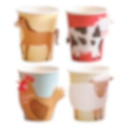 Bauernhof Tiere - Pappbecher 8er-Pack