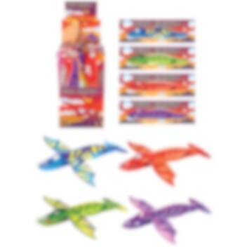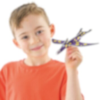 Lassen Sie die Kinder ihren eigenen fliegenden Dinosaurier basteln. Tolle Überraschung für die Geschenktüten oder für das Geburtstagskind selbst. Organisieren Sie einen lustigen Wettbewerb: "Welcher Dinosaurier fliegt am weitesten?“ Wird es ein schöner Flug oder eine Bruchlandung? Der Dinosaurier ist in vier verschiedenen Designs erhältlich und wird einzeln und unsortiert verkauft. Im zusammengebauten Zustand ist der Flieger etwa 17 x 12 cm groß.