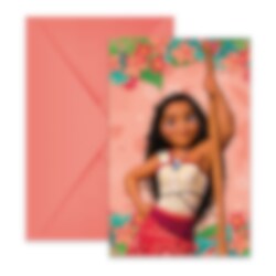 6 farbenfrohe Einladungskarten mit wunderschönem Motiv von Vaiana aus Disneys beliebtem Film. Perfekt, um Freunde zu einem spannenden und abenteuerlichen Geburtstag einzuladen!