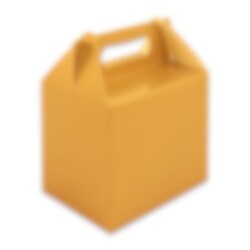 Goldfarbene Geschenkbox mit einem Griff, die sich leicht zusammenfalten lässt. Perfekt zum Einlegen von Süßigkeiten und Überraschungen für die Party oder andere Anlässe. Die Box besteht aus Pappe und ist etwa 15 cm lang, 10 cm breit und 12 cm hoch. Die Geschenkboxen werden einzeln verkauft.
