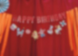 Schaffen Sie eine spektakuläre Zirkusatmosphäre mit dieser farbenfrohen Girlande! Mit dem verspielten "Happy Birthday"-Schriftzug im Zirkusstil, charmanten Illustrationen von Tieren und Artisten sowie langen, orangefarbenen Papierstreifen als Hintergrund wird sie zum Hingucker jeder Geburtstagsfeier.