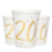Pappbecher Weiß & Gold 20. Geburtstag, 10er-Pack