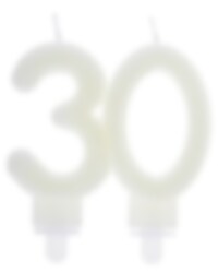 Kerzen, die im Dunkeln leuchten, elegant in Form von der Zahl 30. Die Tortenkerze hat eine Größe von 7,5 x 9 cm.