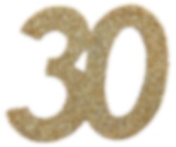 6 glitzerndes großes goldenes Konfetti zum Dekorieren auf der 30. Geburtstagsfeier. Das Konfetti ist in Form von der Zahl 30 und ist 6 x 6 cm groß. Sie sind aus Pappe hergestellt.