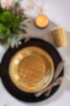 10 ausgefallene holografische Pappbecher in gold glitzernd. Die Becher sind etwa 9,7 cm hoch und fassen 270 ml.
