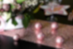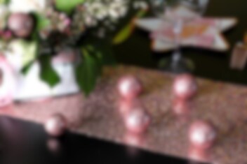 Ausgefallener Tischläufer in Roségold mit vielen glänzenden Pailletten. Geeignet für Partys, Hochzeiten und andere festliche Anlässe.