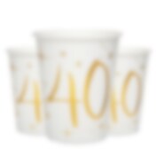 Pappbecher Weiß & Gold 40. Geburtstag, 10er-Pack