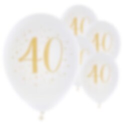 8 weiße Luftballons mit der Zahl 40 und Sternen in Gold. Die Ballons sind dekorativ und können mit vielen anderen Dekorationen und Tischzubehör abgestimmt werden, wenn Sie Ihren 40. Geburtstag feiern.