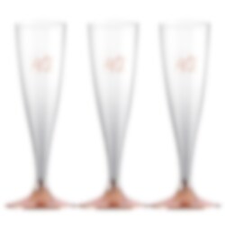 6 Stück schönen und praktischen Einweggläser im Champagner-Stil. Mit den Gläsern können Sie auf der 40. Geburtstagsfeier sowohl den Tisch decken als auch sich unter die Gäste mischen. Die Gläser fassen 14 cl. und stehen auf einem Fuß aus Roségold und haben die Zahl "40" oben aufgedruckt.
