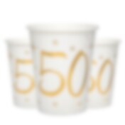 Pappbecher Weiß & Gold 50. Geburtstag, 10er-Pack