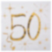 Servietten Weiß & Gold 50. Geburtstag 20er-Pack
