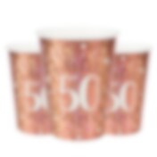 Roségold glitzernde Becher 50. Geburtstag 10er-Pack