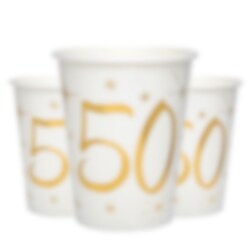 Kombinieren Sie die Becher gerne mit anderen ausgefallenen Dekorationen und Tischaccessoires im Motto einer 50. Geburtstagsfeier.