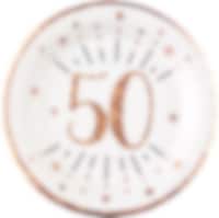 10 glitzernder Pappbecher in Roségold mit der Zahl "50". Diese Becher sind wirklich schön und dekorativ, wenn Sie für eine 50. Geburtstagsfeir decken. Die Becher sind etwa 10 cm hoch und fassen 270 ml.
