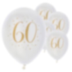 8 weiße Luftballons mit der Zahl 60 und Sternen in Gold. Die Ballons sind dekorativ und können mit vielen anderen Dekorationen und Tischzubehör abgestimmt werden, wenn Sie Ihren 60. Geburtstag feiern.