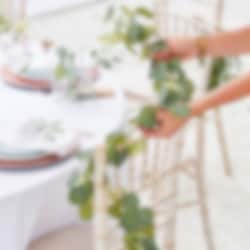Wunderschöne Deko-Girlande in Form von grünen Eukalyptusblättern, mit der Sie den Raum dekorieren können, wenn eine Party oder ein Fest ansteht. Die Dekoration besteht aus Kunststoff und ist etwa 1,9 Meter lang.