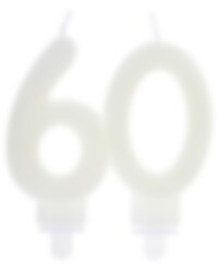 Kerzen, die im Dunkeln leuchten, elegant in Form von der Zahl 60. Die Tortenkerze hat eine Größe von 7,5 x 9 cm.