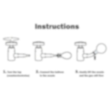 2. Befolgen Sie die Anweisungen sorgfältig. Beachten Sie, dass die Garantie erlischt, wenn der Heliumbehälter unsachgemäß behandelt wurde. Zum Beispiel, wenn die Gewinde der Düse schief oder beschädigt sind, oder wenn nur das grüne Ventil geöffnet wurde, aber die Düse nicht gedreht wurde, um Helium freizulassen. Sehen Sie sich unser Anleitungsvideo unter https://youtu.be/dNYfWZtrG3M an und lesen Sie die Anweisungen auf der Verpackung.
