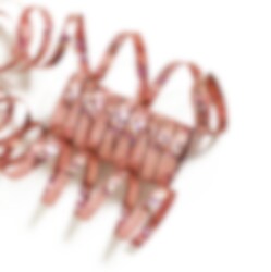 Feine holografische Serpentine in glitzernder roségold Farbe mit 10 Spiralen auf der Rolle, Länge etwa 180 cm.