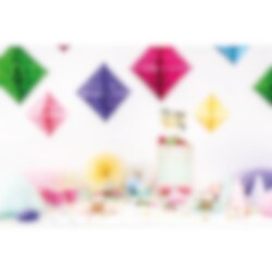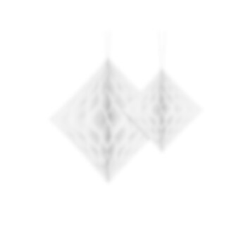 Wunderschöne diamantförmige Dekoration aus weißem Papier mit Wabenmuster, die sich leicht zusammenfalten lässt und mit doppelseitigem Klebeband zusammengehalten wird. Anschließend kann sie an der mitgelieferten Schnur aufgehängt werden. Die Dekoration ist in zwei Größen erhältlich, 20 oder 30 cm hoch. Der Preis bezieht sich auf ein Stück.
