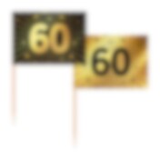 Kerzen Gold 16er-Pack mit Happy Birthday Schild