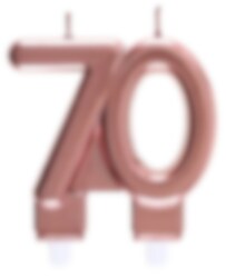 Tortenkerze in Roségold elegant in Form von der Zahl 70. Die Tortenkerze hat eine Größe von 7,5 x 9 cm.