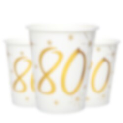 Kombinieren Sie die Becher gerne mit anderen ausgefallenen Dekorationen und Tischaccessoires im Motto einer 80. Geburtstagsfeier.