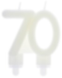 Kerzen, die im Dunkeln leuchten, elegant in Form von der Zahl 70. Die Tortenkerze hat eine Größe von 7,5 x 9 cm.