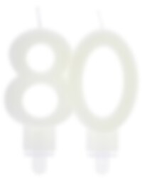 Kerzen, die im Dunkeln leuchten, elegant in Form von der Zahl 80. Die Tortenkerze hat eine Größe von 7,5 x 9 cm.