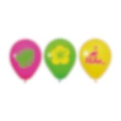 Schaffen Sie eine farbenfrohe und tropische Partyatmosphäre mit diesen schönen Luftballons im Aloha-Stil. Die leuchtenden Farben in Rosa, Grün und Gelb, zusammen mit Motiven von Blättern, einer Blume und dem Text Aloha, machen sie zu einer verspielten Dekoration, die perfekt zu Sommerfesten, Hawaii-Geburtstagen, Poolpartys oder anderen Feierlichkeiten mit tropischem Flair passt.