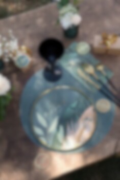 10 exklusive Pappbecher mit Blattmotiven in grünen Farbtönen und Gold sowie dem Text Happy Birthday to you! in Gold. Die Teller haben einen Durchmesser von 22,5 cm.