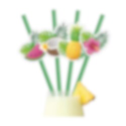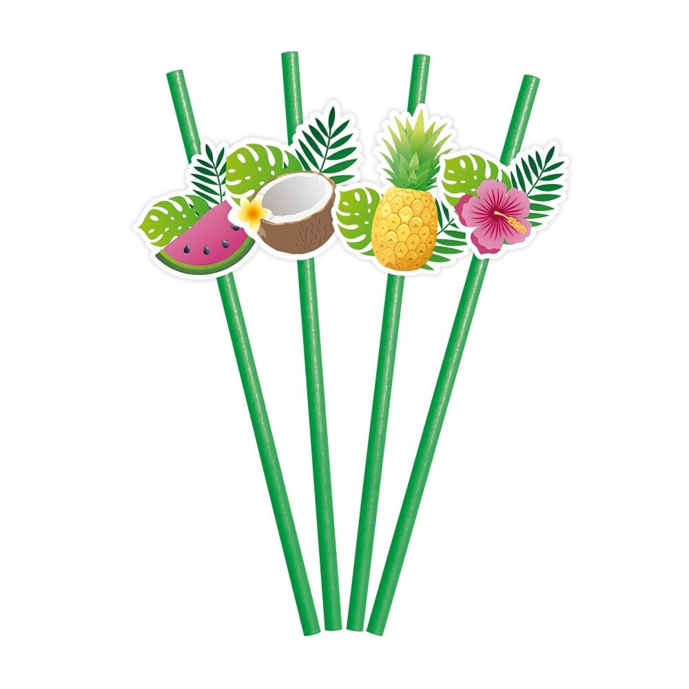 ✓ Enthält 6 Papierstrohhalme mit Dekorationen von tropischen Früchten und Blättern