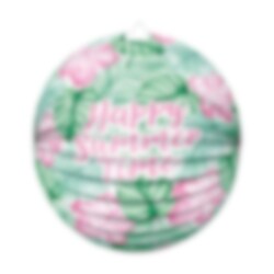 Schaffen Sie eine wunderbar sommerliche Atmosphäre mit dieser farbenfrohen Laterne im tropischen Stil. Mit grünen Blättern, rosa Blüten und dem Text Happy Summer Time wird sie zu einem dekorativen Detail, das perfekt für Sommerfeste, Poolpartys, Grillabende oder Geburtstage mit tropischem Thema passt.