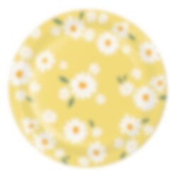 8 gelbe Pappteller mit schönen Blumenmotiven. Die Teller haben einen Durchmesser von 23 cm.