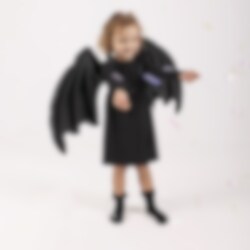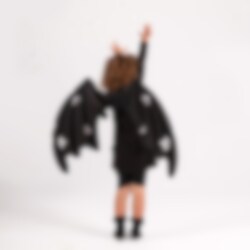Cooler Folienballon in Form von Fledermausflügeln in Schwarz, verziert mit silbernen Sternen. Perfekt als einfaches und lustiges Zubehör für die Halloween-Feier.