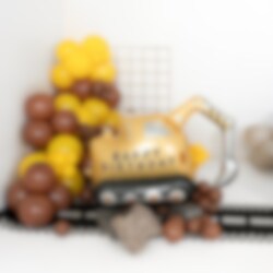 Folienballon in Form eines coolen Baggers - die perfekte Dekoration für eine Geburtstagsparty mit Fahrzeug-Motto!