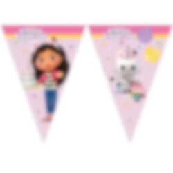 Wimpelkette aus Papier mit niedlichen Motiven von Gabby's Dollhouse. Eine stilvolle Hängedeko im Partyraum, wenn es Zeit für Festlichkeiten ist.