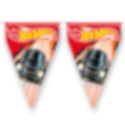 Farbenfrohe Wimpelkette aus Pappe mit coolen Hot Wheels Motiven – die perfekte Deko, um den Partyraum in eine echte Rennstrecke zu verwandeln!